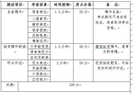 (一)播音与主持艺术专业(本测试为面试,不设复试。)