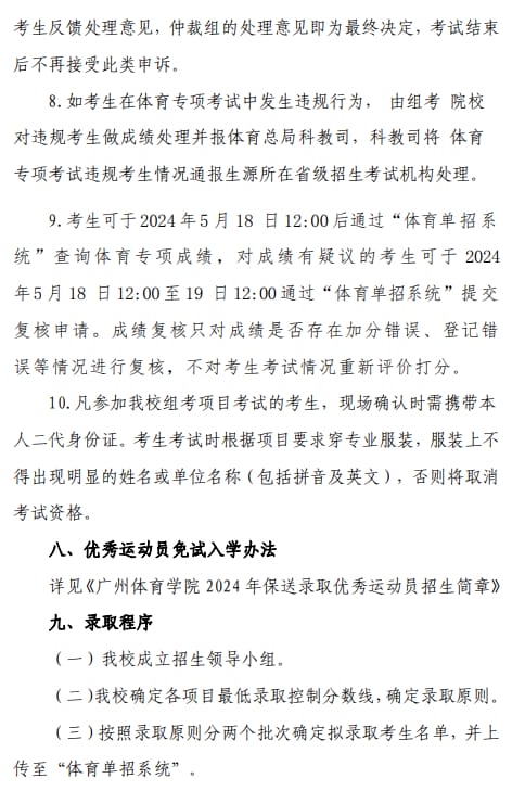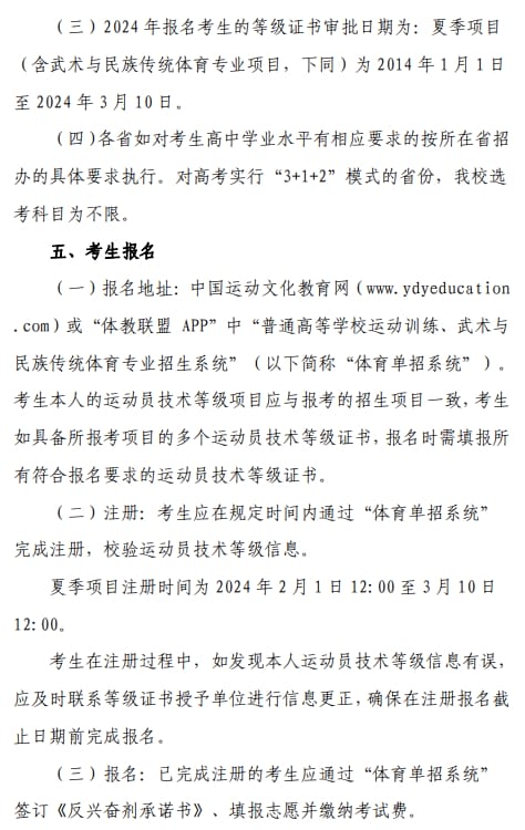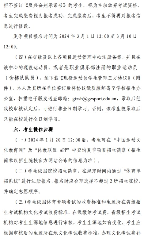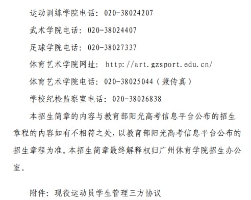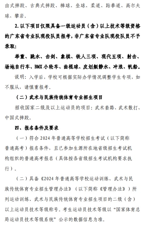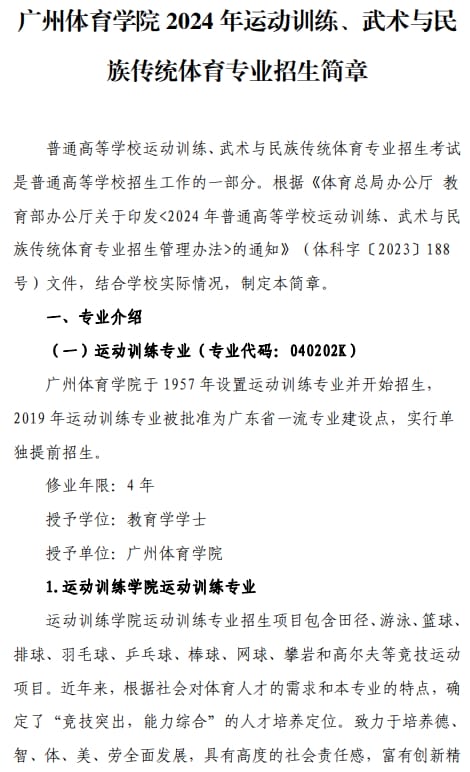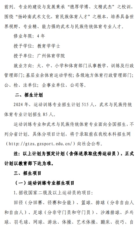 广州体育学院2024年运动训练、武术与民族传统体育专业招生简章